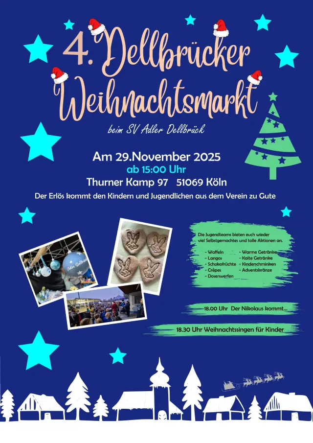 Kommt vorbei am Vortag des 1. Advents und habt mit Familie, Freunden und Nachbarn ein paar schöne Stunden bei SV Adler Dellbrück.